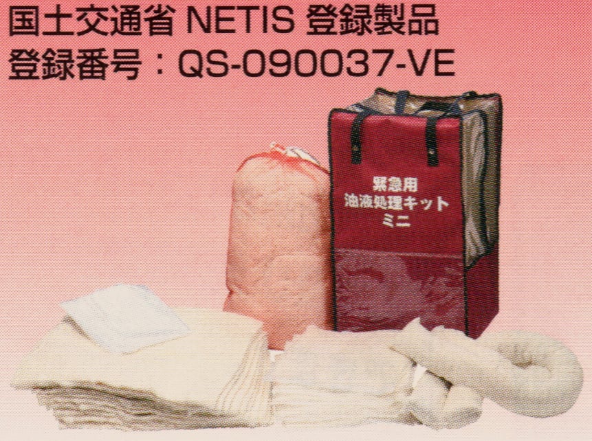 環境に優しい天然繊維(特許製品)を使用したキットです。PP製品に比べ約3倍の吸着力があります(自重の約30倍)。